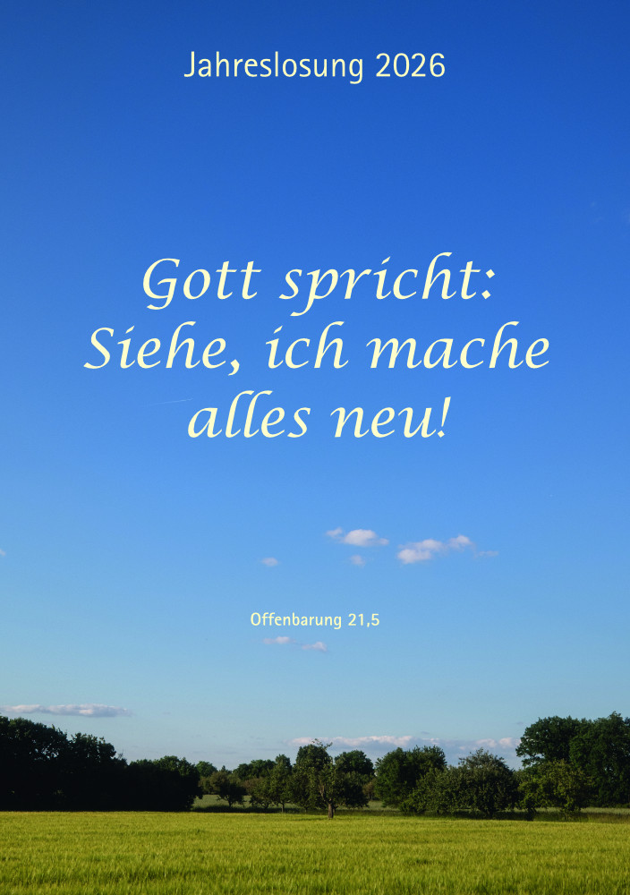 Alles ist neu: Das Jahr, der Kalender, die Zählung der Monate. Alles ist neu - nur wir sind die Alten. Und wir haben aus dem vergangenen Jahr mitgebracht, was uns belastet und bewegt. Die Welt, in der wir am Neujahrstag aufwachen, ist keine andere geworden durch die neue Zahl auf dem Kalender. Und trotzdem wacht an jedem Neujahrsmorgen die Hoffnung mit auf: Dass es einmal anders werden kann. Neu. Dass einer die Tränen abwischt und der Tod nicht mehr ist und Schmerz und Geschrei, wie es in der Bibel kurz vor der Jahreslosung für das neue Jahr 2026 heißt.